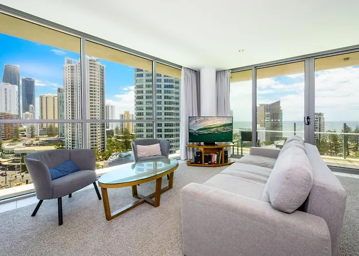 Surfers Paradise Ocean Vista Suite With Pool Gold Coast de 117 m² est situé au centre de Gold Coast, à 6 minutes de marche de la Plage de Surfers Paradise. La résidence avec un solarium est situé à proximité immédiate le Musée de cire.